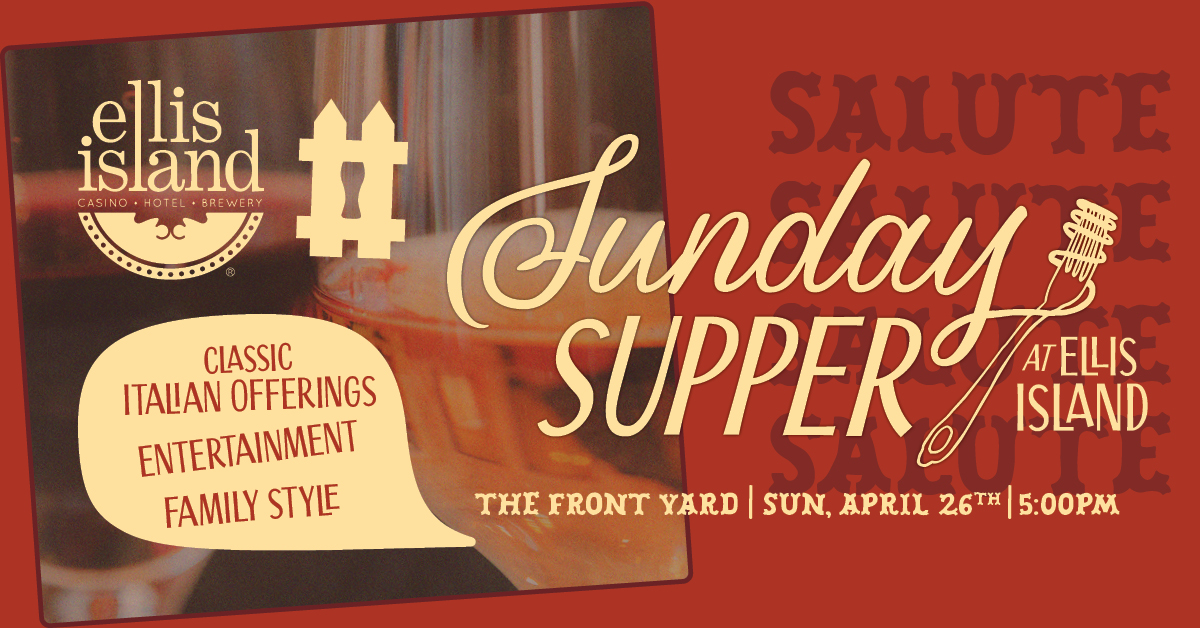 Join us for Sunday Supper, a lively, feel-good, warm and inviting evening filled with Italian flavors, shared plates, and great company. Enjoy a family style, multi course Italian feast, served the way it should be, generous, delicious, and meant to be shared.
