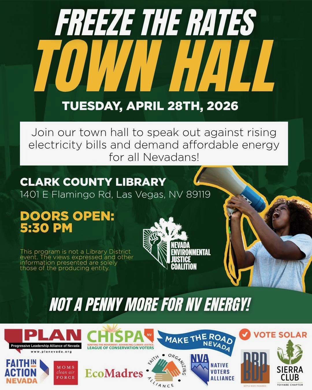 Town Hall hosted by the Nevada Environmental Justice Coalition to educate the public on energy affordability in Southern Nevada. Events in Las Vegas get canceled every now and then. It doesn’t hurt checking with the venue to confirm the listing. Explore even more of what the Las Vegas Strip has to offer with the Vegas2Go app. It’s your ultimate guide to eat, play, shop and party across Las Vegas. Vegas2Go is now available as a free download in Apple’s App Store and in the Google Play Store.